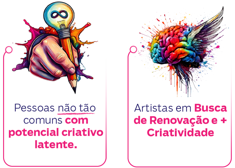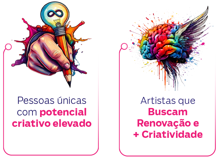 • Desbloquear o seu Potencial Criativo Interno e tornar-se uma potência na sua arte, seu trabalho e, principalmente, em sua vida!
